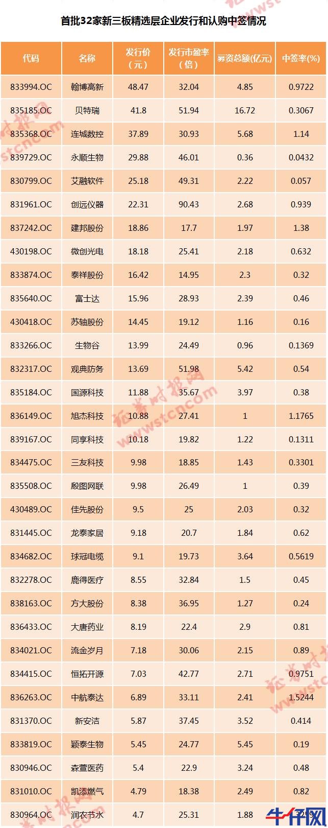 新三板精選層首批企業(yè)下周一上市 合計募資94.52億