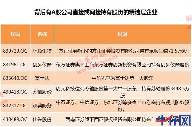 值得注意的是,上述首批32家精選層企業(yè)背后,存在不少A股上市公司的身影。