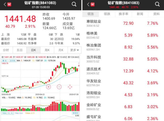 受現貨市場提振,寒銳鈷業(行情300618,診股)、華友鈷業(行情603799,診股)、洛陽鉬業(行情603993,診股)等上市鈷企的股價紛紛受到拉升。