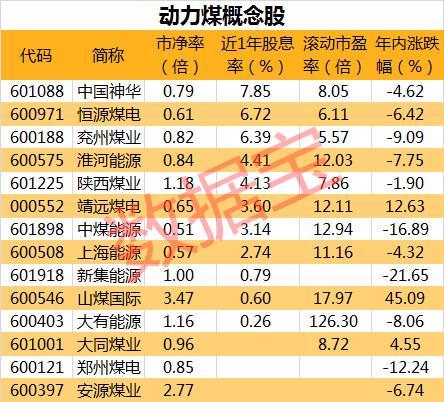 動力煤板塊估值較低。9家公司股價跌破凈值,如中煤能源、上海能源(行情600508,診股)、恒源煤電(行情600971,診股)和靖遠煤電的最新PB值均不足1。兗州煤業(行情600188,診股)、恒源煤電和陜西煤業(行情601225,診股)等10家公司最新滾動市盈率不足20倍。