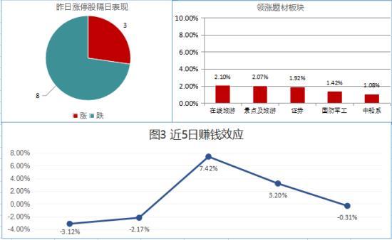 上一個(gè)交易日的漲停股隔日漲跌幅表現(xiàn)比為3:8,跌多于漲,目前短線追蹤環(huán)境較差;