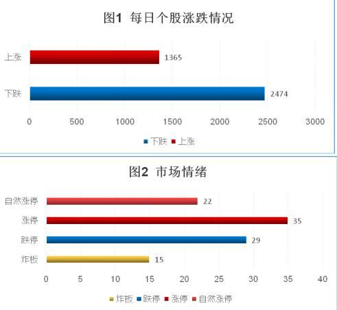 市場(chǎng)情緒說(shuō)明:每日個(gè)股漲跌情況如圖1所示,圖2為漲停個(gè)股(新股除外)數(shù)量以及漲停未遂炸板股數(shù)量,反應(yīng)市場(chǎng)強(qiáng)弱(弱<30≤較弱<40≤中等<50≤強(qiáng)<80≤很強(qiáng))。