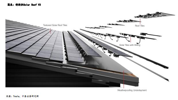經(jīng)歷幾年的發(fā)展,在2019年10月, 特斯拉推出第三代光伏屋頂即Solar Roof V3,外觀類似于普通的瓦片,但表面為帶紋理的玻璃,內(nèi)部隱藏有可以發(fā)電的光伏電池,實(shí)現(xiàn)光伏建筑一體化(BIPV),拓展應(yīng)用空間,引起市場關(guān)注。