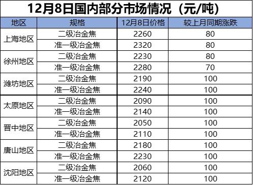 焦炭市場也繼續漲價行情,9月份以來價格只漲不跌,山西市場均價累計漲幅近16%。今日的焦炭市場漲后偏強運行,目前山東港口一級焦貿易現匯出庫價格在2480元/噸,較前日上漲20元/噸。